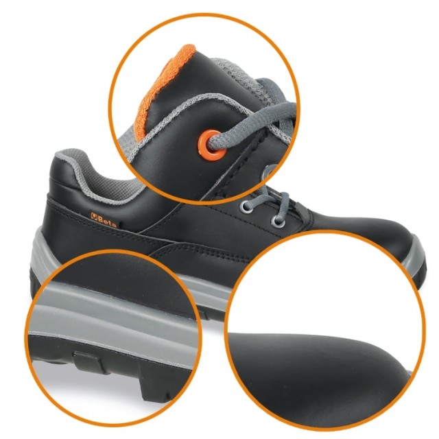 BASIS lær sikkerhetssko, vannavstøtende BASIC-linjen: det smarte, allsidige og økonomiske valget for sikkerhet på jobb. BASIC-linjen står for kvalitet, pålitelighet og økonomi uten å gå på kompromiss med styrke og sikkerhet. Valget av en todelt polyuretan yttersåle gir stabilitet og grep.